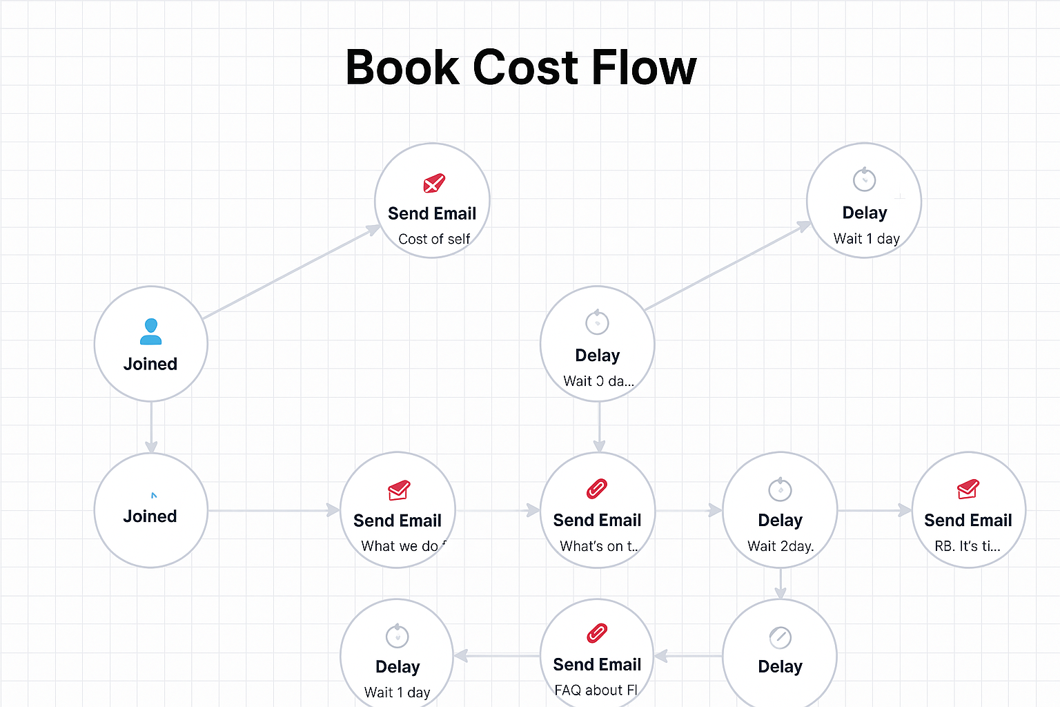 This automation was triggered by a high-intent lead magnet: a self-publishing cost calculator. Once a visitor submitted their quote request, they were entered into this follow-up sequence designed to nurture interest, reduce hesitation, and drive conversion.